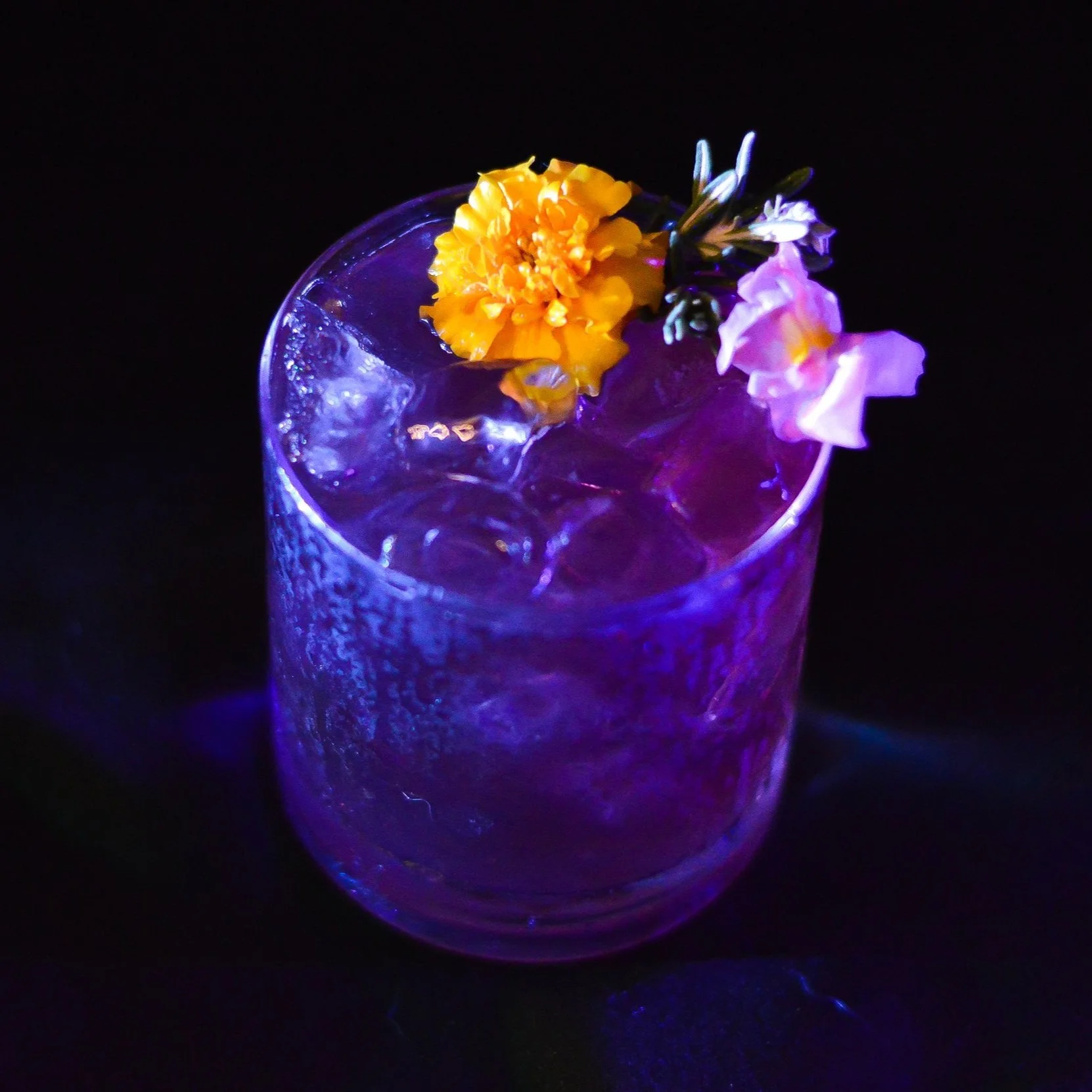 London dry gin, creme de violette, cassis, lime, tonic, rosemary